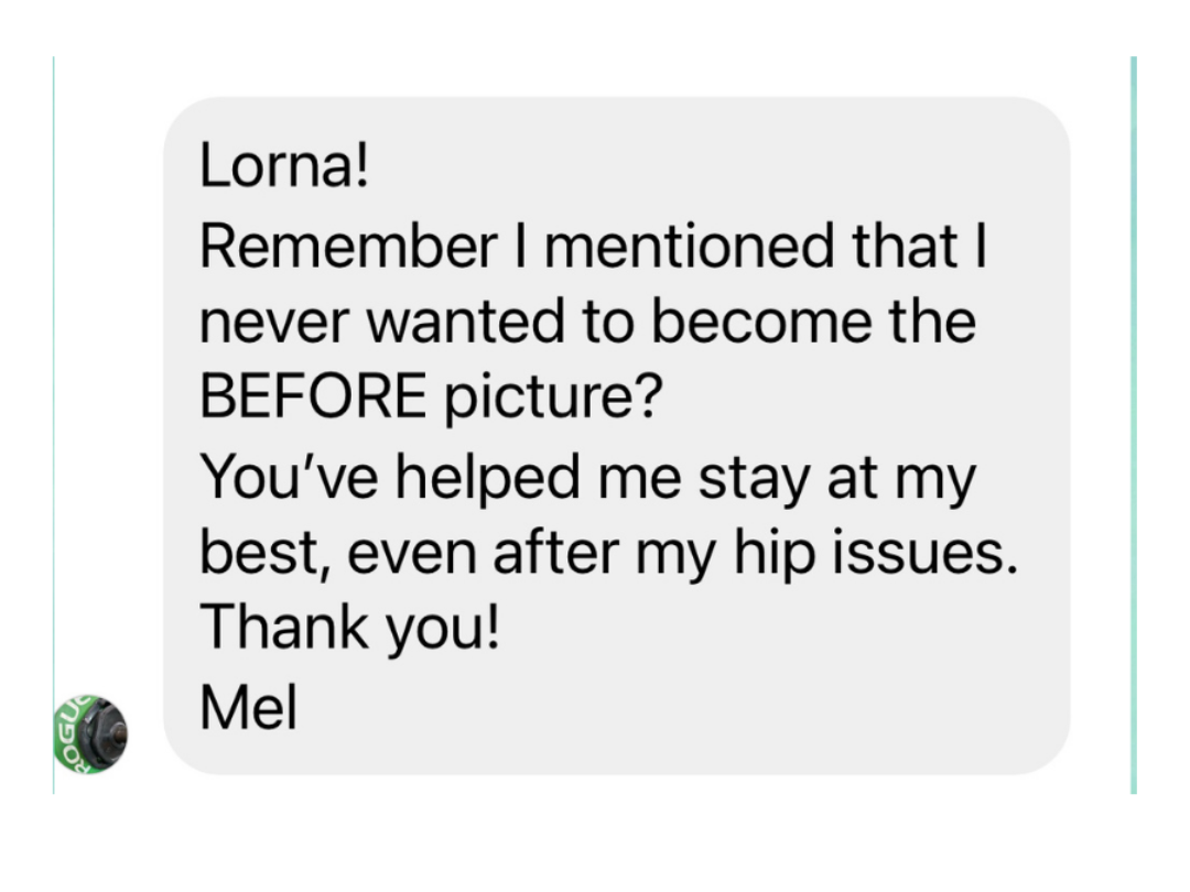 I'm Lorna, personal trainer and 8x World Champion athlete with two hip replacements…still competing at 60. I love working with women 45-60 because I understand what it takes to stay strong, fit, and healthy through midlife. Your body isn't broken. It just needs someone who knows how to work with where you are right now.